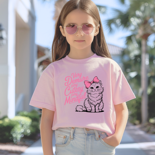 Very Demure, Very Cutesy, Very Mindful Kids Tee | Cutesy Cat | More Colours